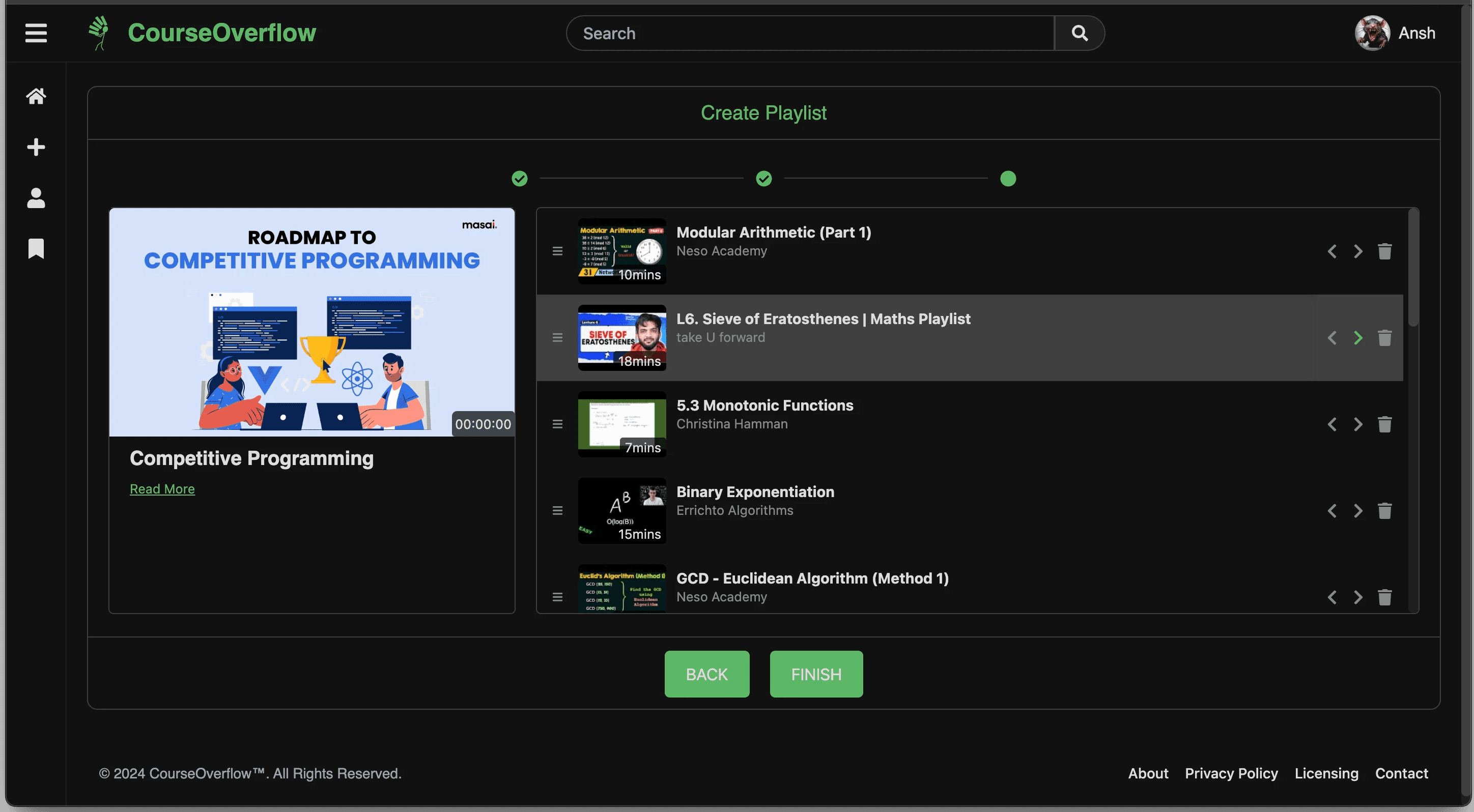 CourseOverflow is a web app that generates playlists by analysing PDF/TXT documents using the Google Gemini API, while YouTube API v3 is leveraged for playlist creation.